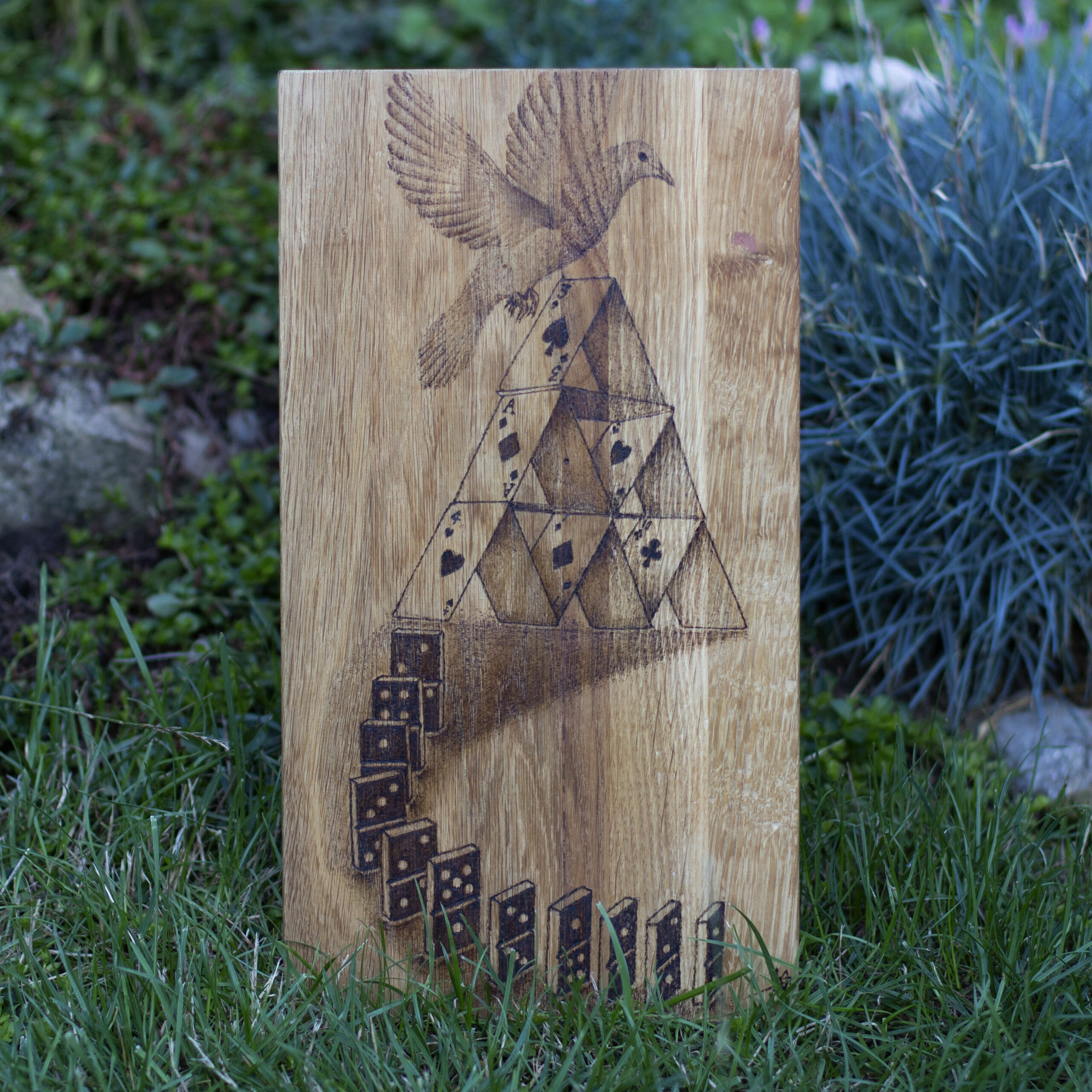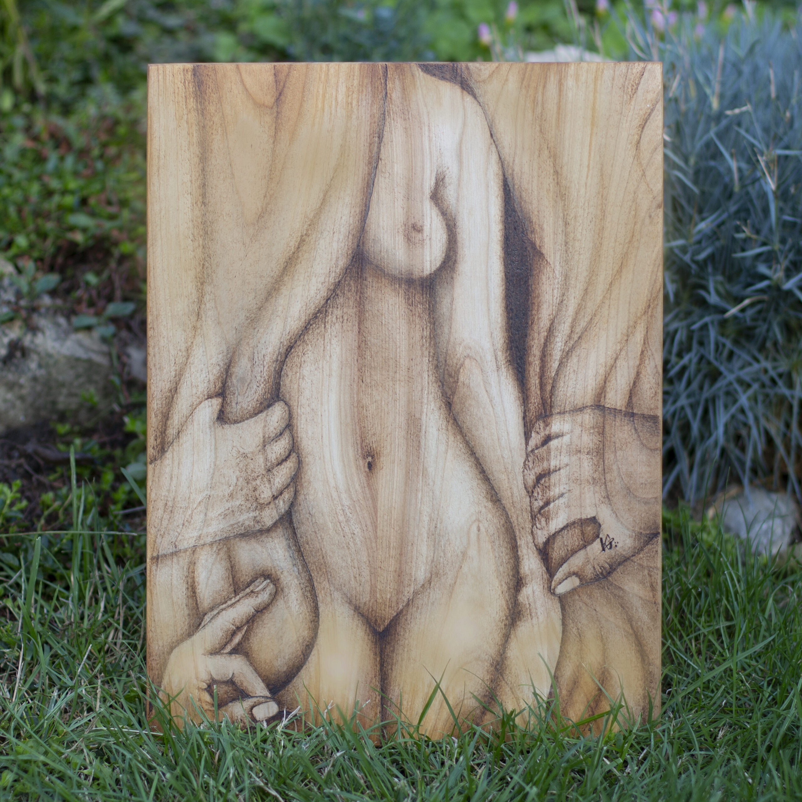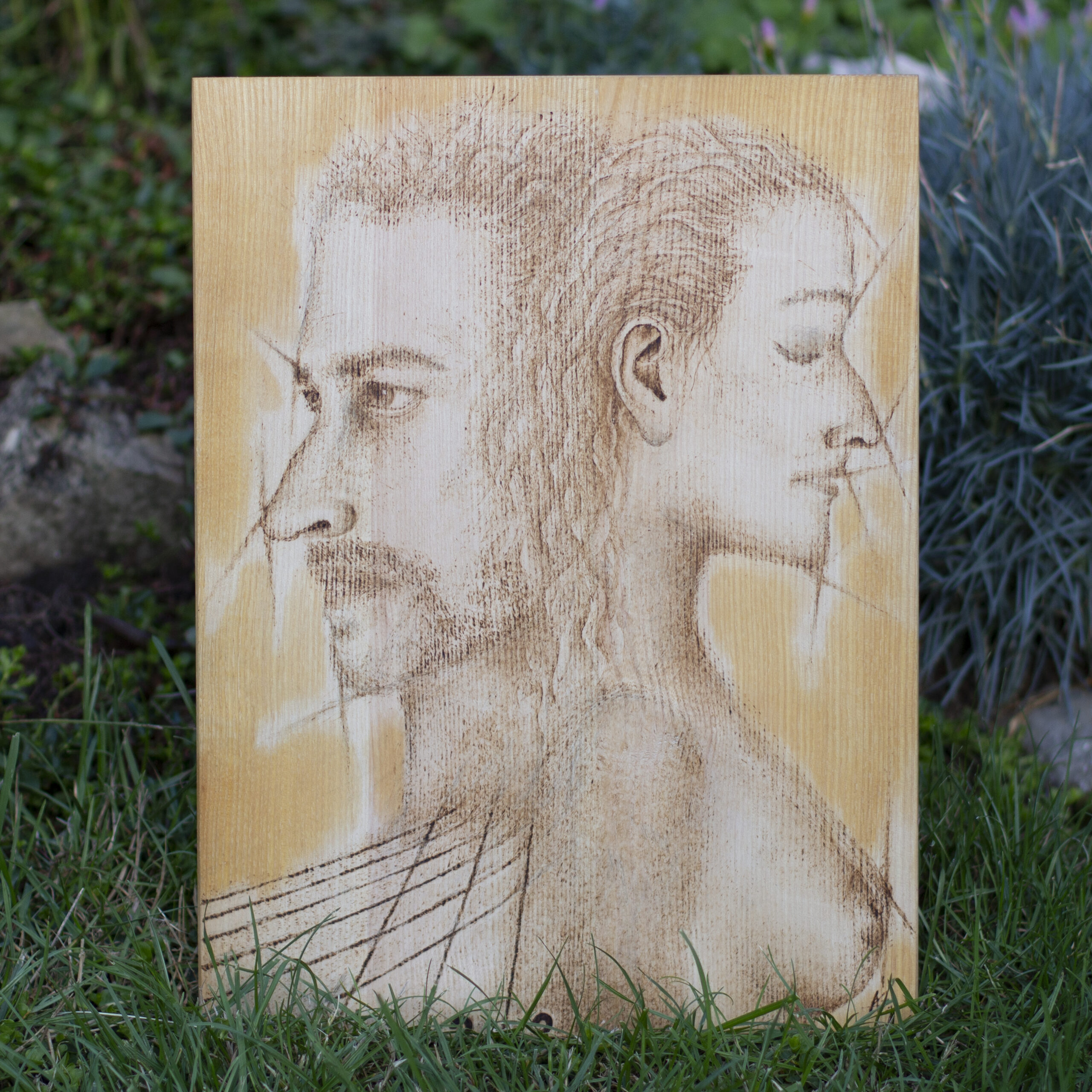 Snažím se skrze Pyrografii autenticky přenášet část svého vnitřního světa v aktuální podobě do dřevěného plátna. Je to de facto takový intimní otisk. Což je pro mou tvorbu asi nejvíc signifikantní.