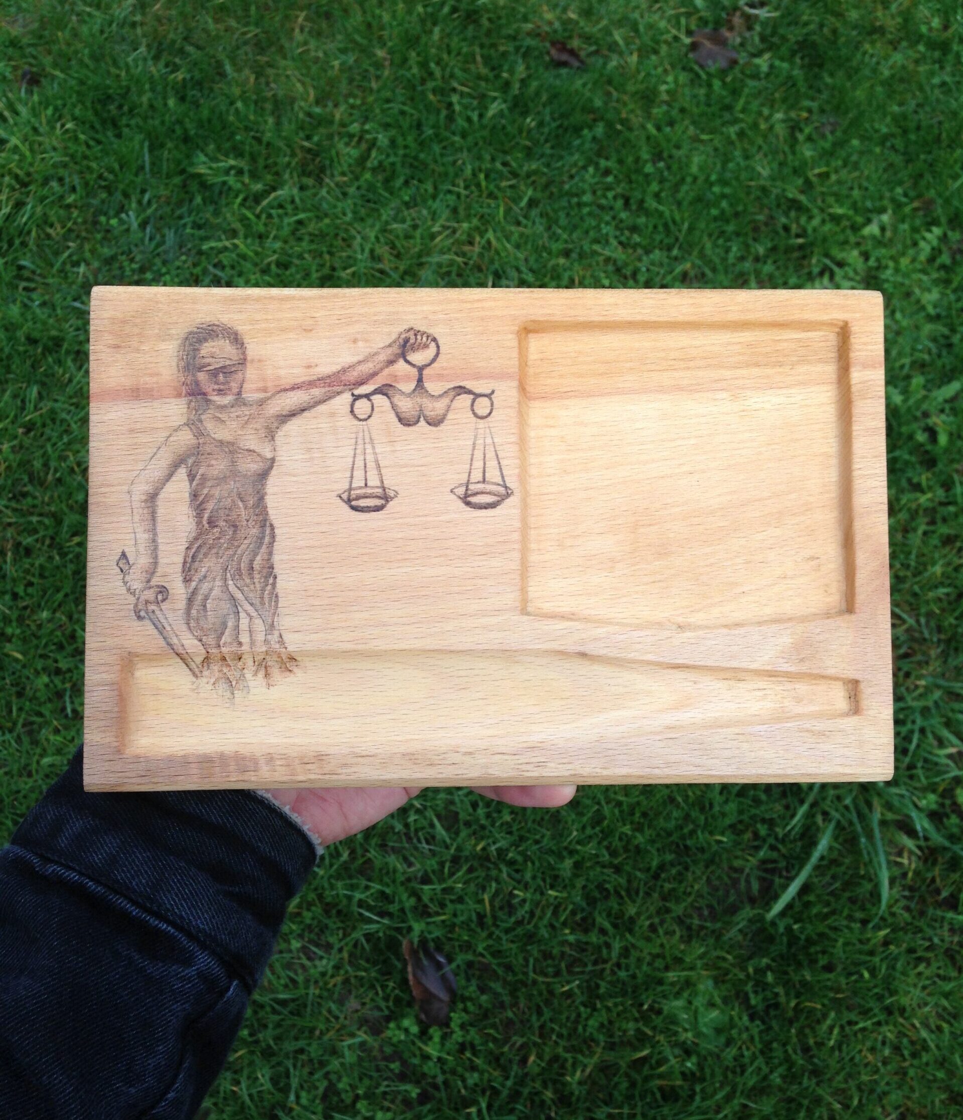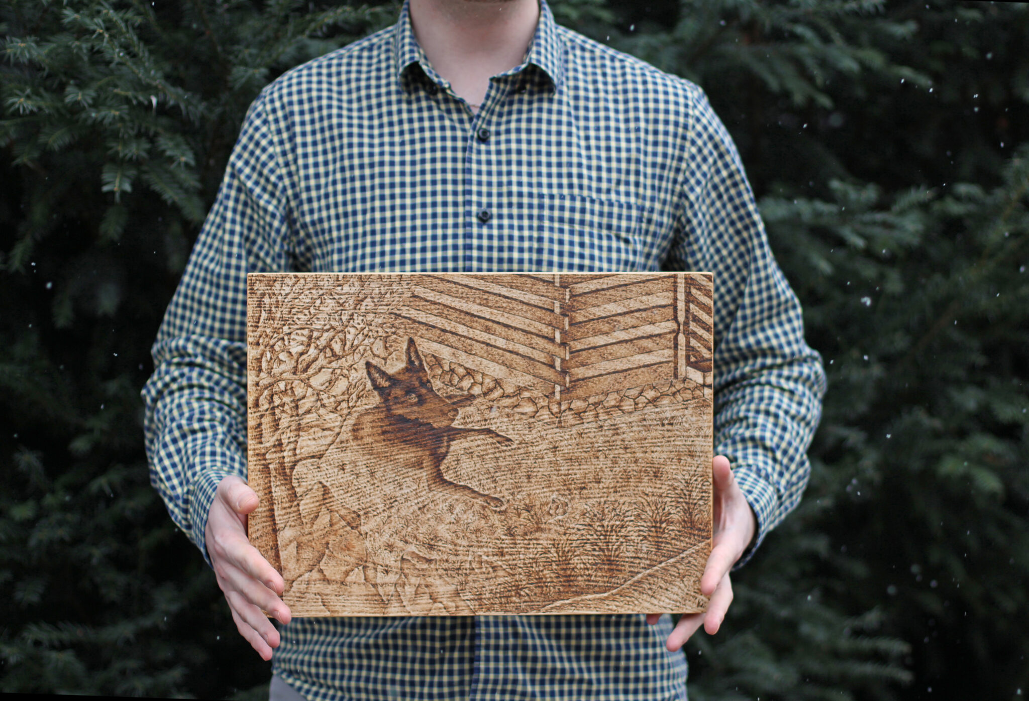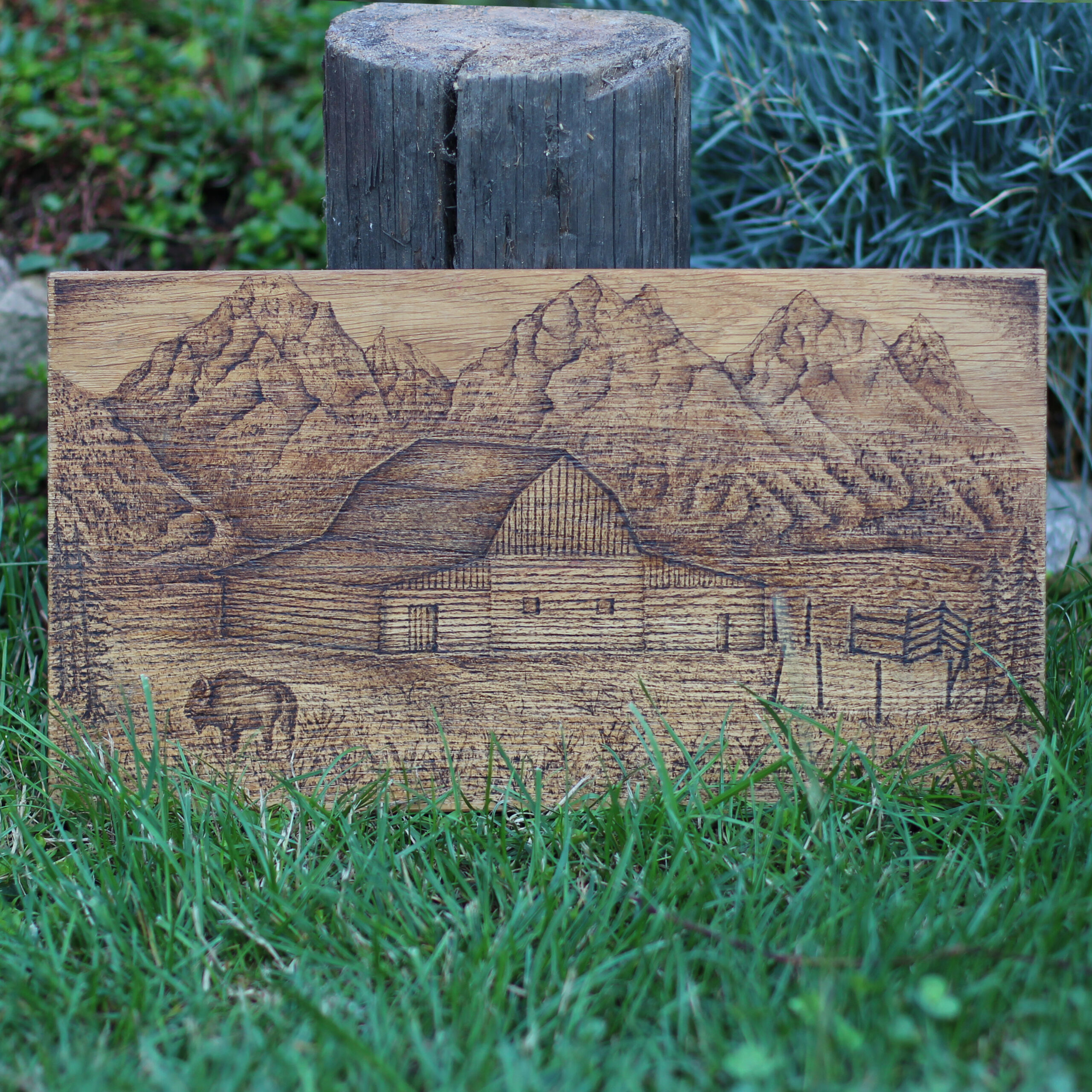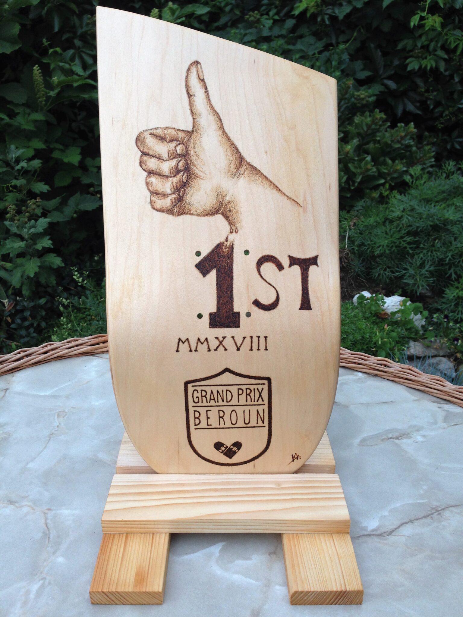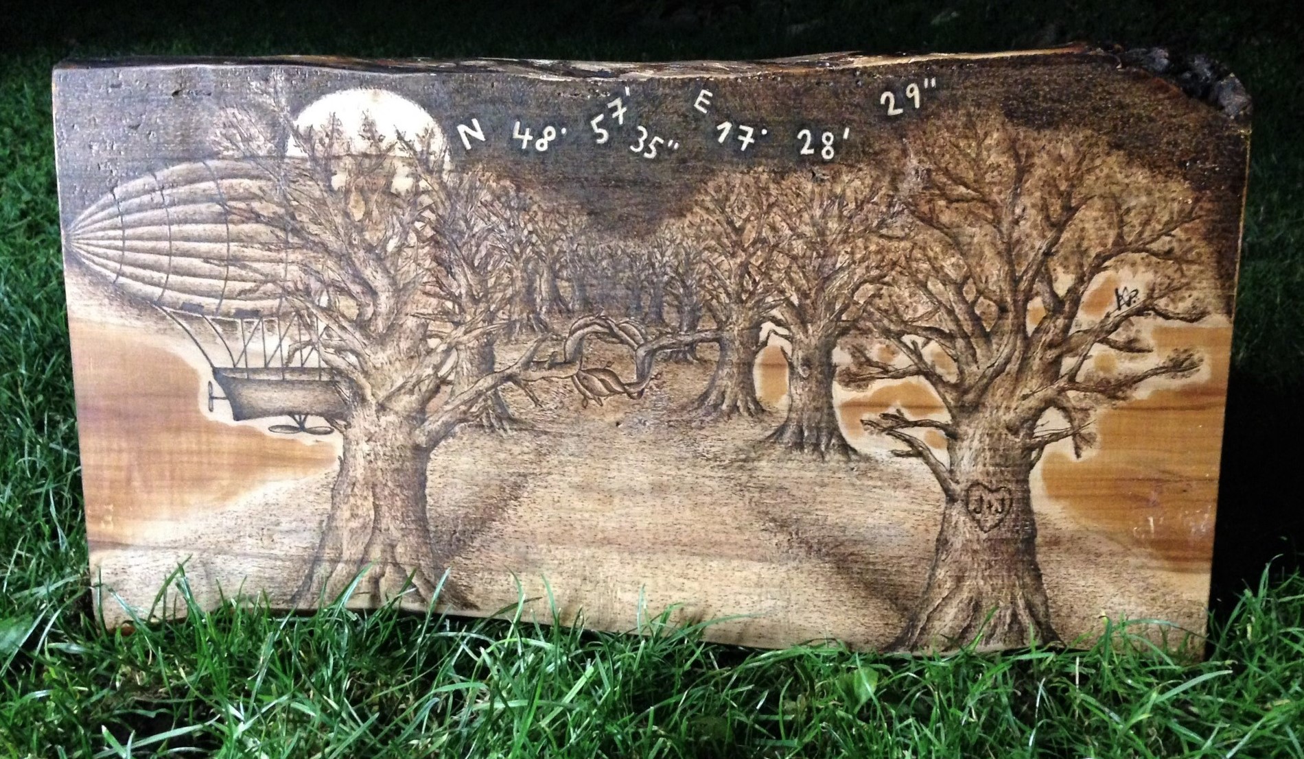 Pyrografie je originální a docela zdlouhavá technika, kdy se ručně s pomocí horkého předmětu (v mém případě pera se žhavým drátem) vypalují/kreslí monochromatické obrazy do dřeva.
