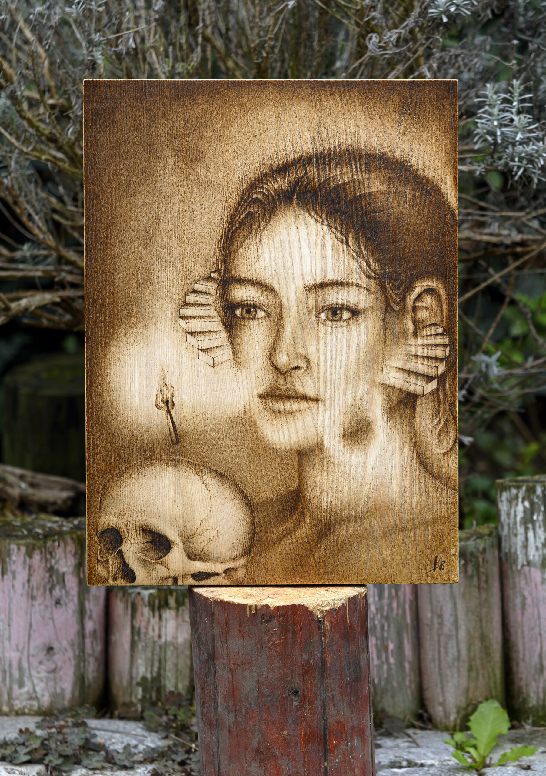 S vypalováním jsem začal bez vnějšího popudu a zcela nepolíben touto technikou v únoru roku 2016. Takže jsem vlastně vůbec nevěděl do čeho jdu a od té doby se to moc nezměnilo. Nicméně s každým dalším obrazem jsem o kousek dál v poznání tohoto řemesla a sebe samého.